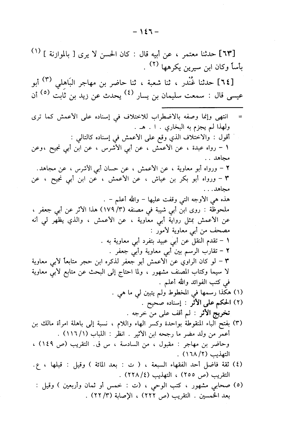 63 - حَدَّثَنَا مُعْتَمِرٌ، عَنْ أَبِيهِ، قَالَ: كَانَ الْحَسَنُ «§لَا يَرَى بِالْمُوَازَنَةِ بَأْسًا» ، وَكَانَ ابْنُ سِيرِينَ يَكْرَهُهَا