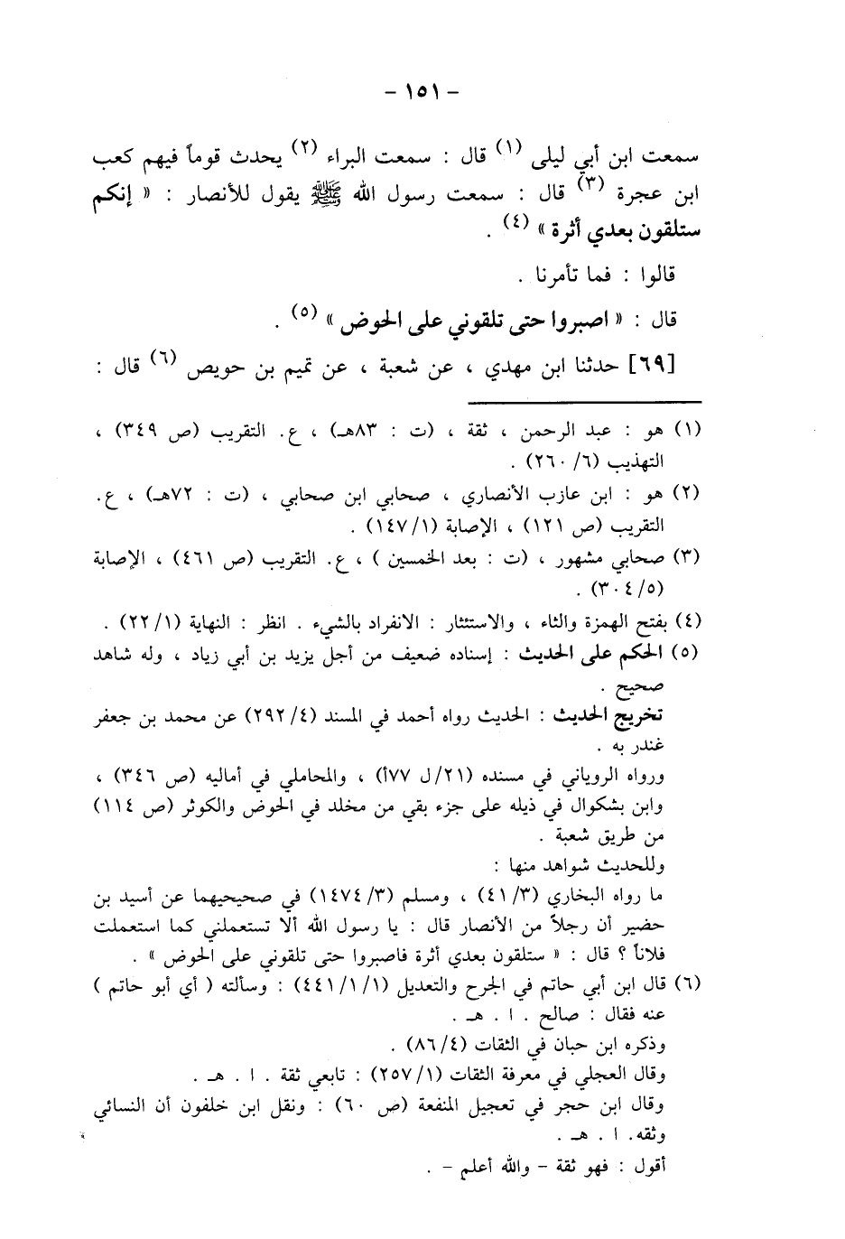 69 - حَدَّثَنَا ابْنُ مَهْدِيٍّ، عَنْ شُعْبَةَ، عَنْ تَمِيمِ بْنِ حُوَيَصٍ، قَالَ -[152]-: سَمِعْتُ أَبَا زَيْدٍ يَقُولُ «§غَزَوْتُ مَعَ رَسُولِ اللَّهِ صَلَّى اللهُ عَلَيْهِ وَسَلَّمَ ثَلَاثَ عَشْرَةَ غَزْوَةً»