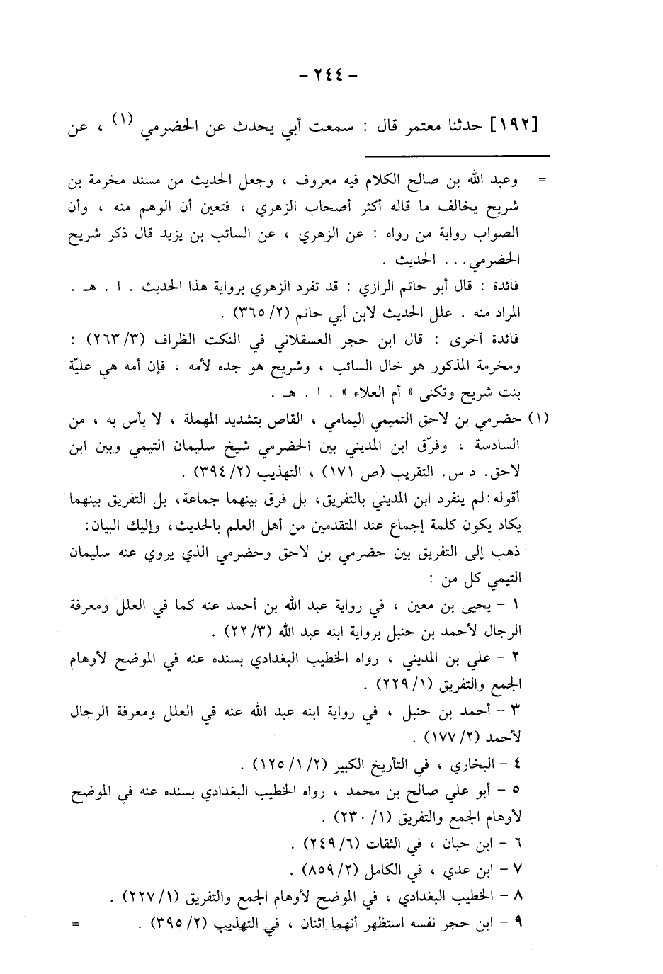 192 - حَدَّثَنَا مُعْتَمِرٌ، قَالَ: سَمِعْتُ أَبِي، يُحَدِّثُ، عَنِ الْحَضْرَمِيِّ، عَنِ -[245]- الْقَاسِمِ بْنِ مُحَمَّدٍ، عَنْ عَبْدِ اللَّهِ بْنِ عَمْرِو بْنِ الْعَاصِ، أَنَّ امْرَأَةً كَانَ يُقَالُ لَهَا أُمُّ مَهْزُولٍ كَانَتْ تَكُونُ بِأَجْيَادٍ، تُسَافِحُ، وَتَشْتَرِطُ لِلرَّجُلِ يَتَزَوَّجُهَا -[246]- أَنْ تَكْفِيَهُ النَّفَقَةَ، وَإِنَّ رَجُلًا مِنَ الْمُسْلِمِينَ اسْتَأْذَنَ فِيهَا رَسُولَ اللَّهِ صَلَّى اللهُ عَلَيْهِ وَسَلَّمَ، فَقَرَأَ نَبِيُّ اللَّهِ صَلَّى اللهُ عَلَيْهِ وَسَلَّمَ هَذِهِ الْآيَةَ أَوْ قَالَ: نَزَلَتْ أَوْ فَأُنْزِلَتْ: " {§وَالزَّانِيَةُ لَا يَنْكِحُهَا إِلَّا زَانٍ أَوْ مُشْرِكٌ} [النور: 3] "