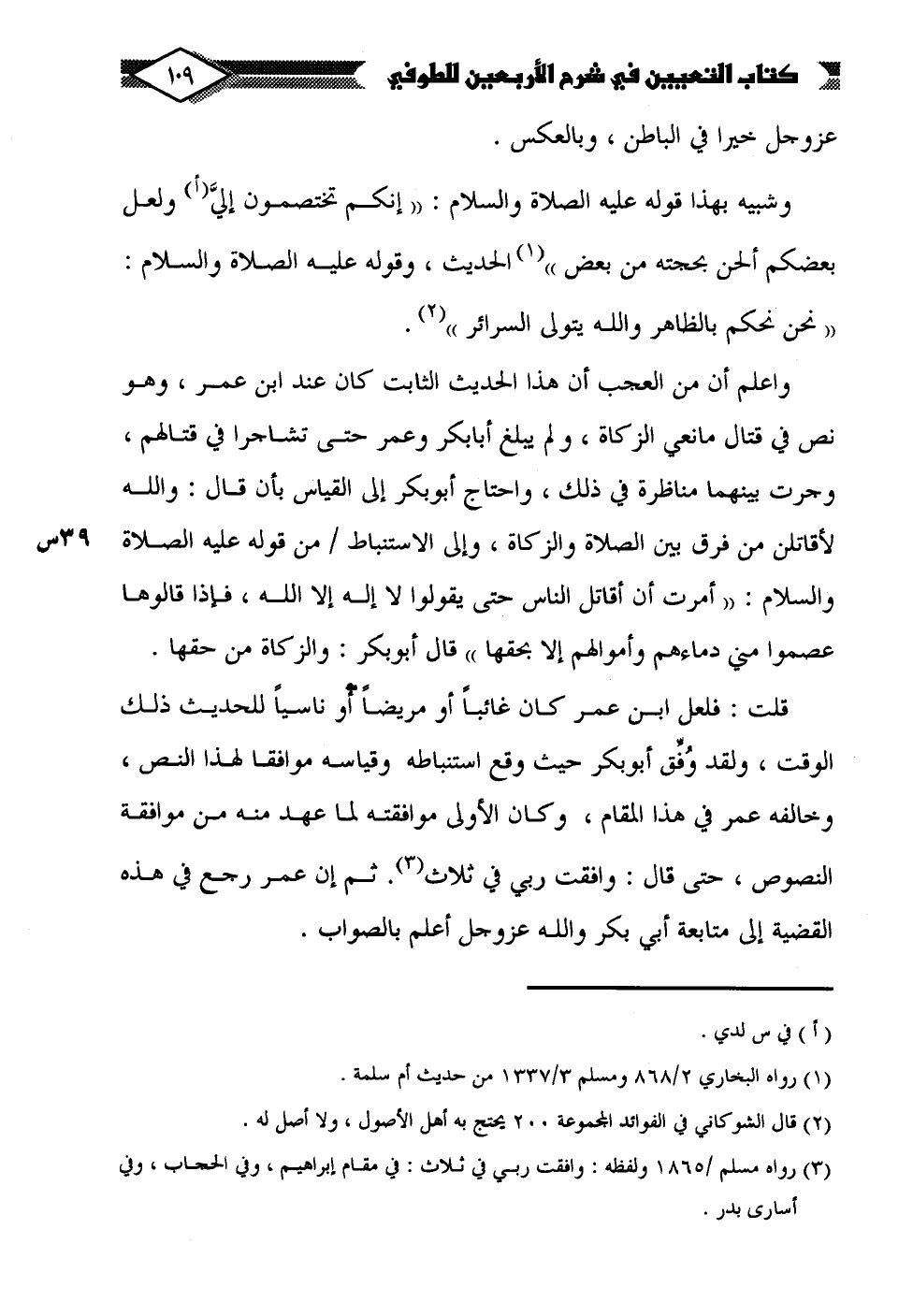 واعلم أن من العجب أن هذا الحديث الثابت كان عند ابن عمر، وهو نص في قتال مانعي الزكاة، ولم يبلغ أبا بكر وعمر حتى تشاجرا في قتالهم، وجرت بينهما مناظرة في ذلك، واحتاج أبو بكر إلى القياس بأن قال: والله لأقاتلن من فرق بين الصلاة والزكاة، وإلى الاستنباط من قوله عليه الصلاة والسلام: "أمرت أن أقاتل الناس حتى يقولوا لا إله إلا الله، فإذا قالوها عصموا مني دماءهم وأموالهم إلا بحقها" قال أبو بكر: والزكاة من حقها.