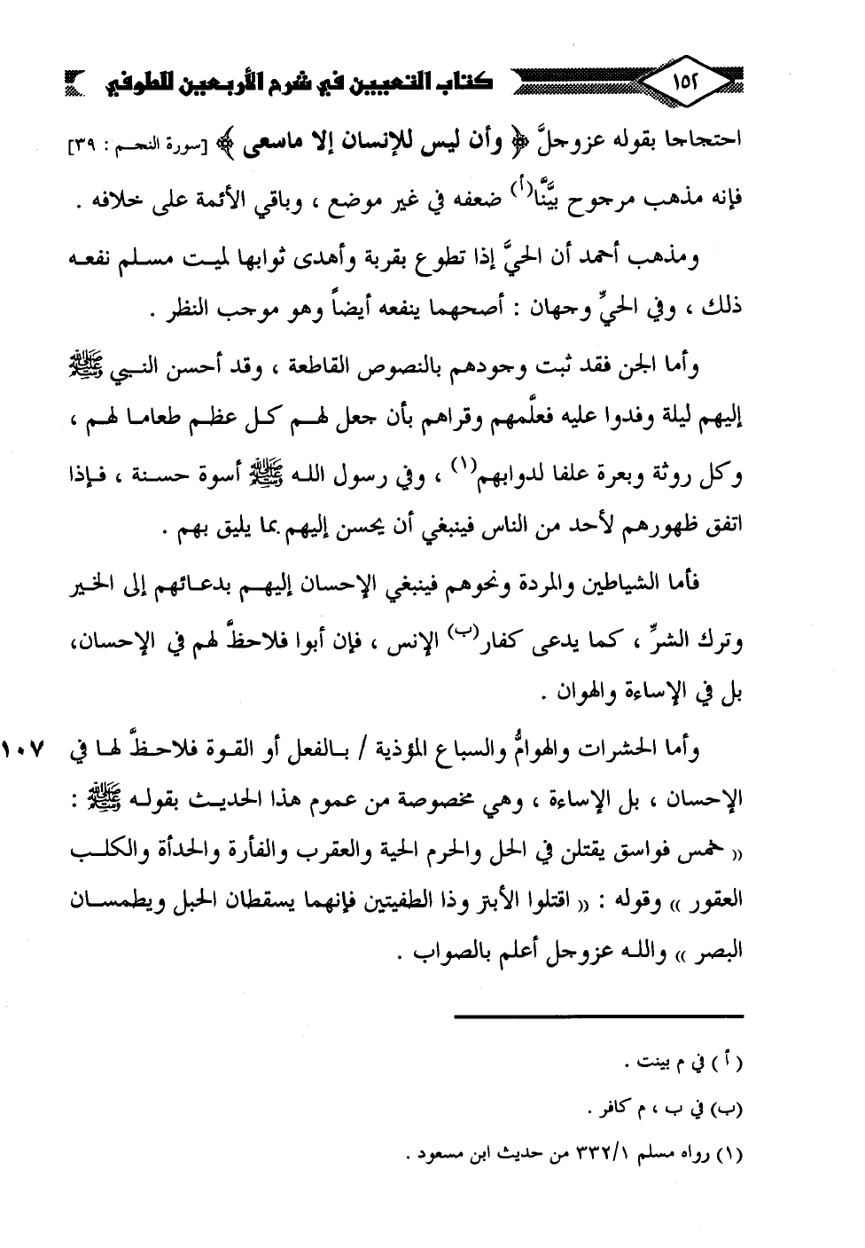 فأما الشياطين والمردة ونحوهم فينبغي الإحسان إليهم بدعائهم إلى الخير وترك الشرِّ، كما يدعى كفار (ب) الإنس، فإن أبوا فلا حظَّ لهم في الإحسان، بل في الإساءة والهوان.