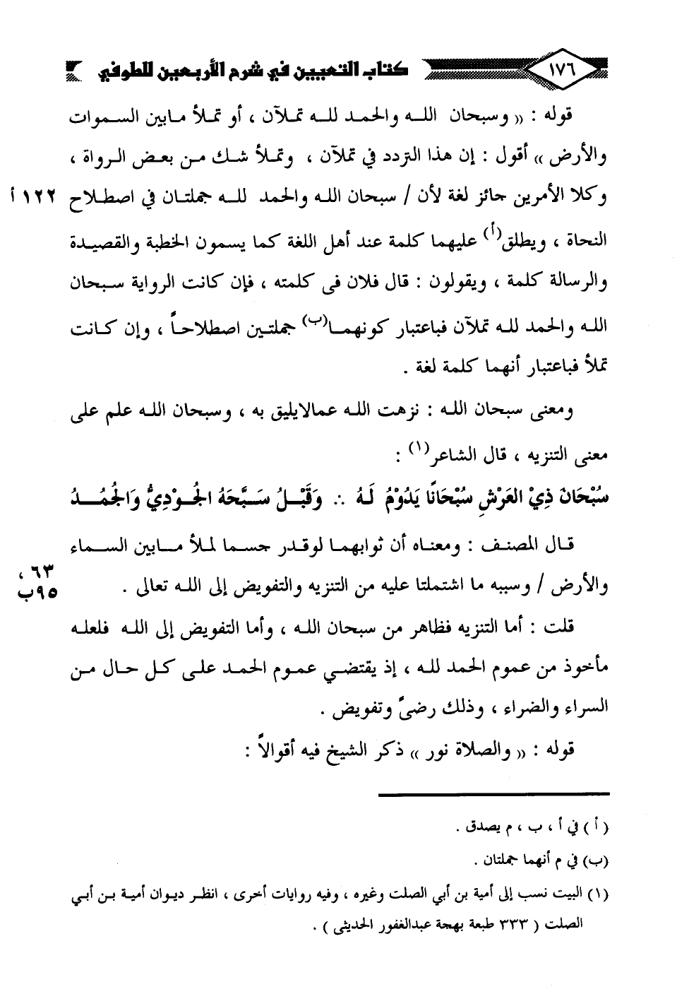 سُبْحَان ذِي العَرْشِ سُبْحَانًا يَدُوْمُ لَهُ ... وَقَبْلُ سَبَّحَهُ الجُوْدِيُّ وَالجُمُدُ