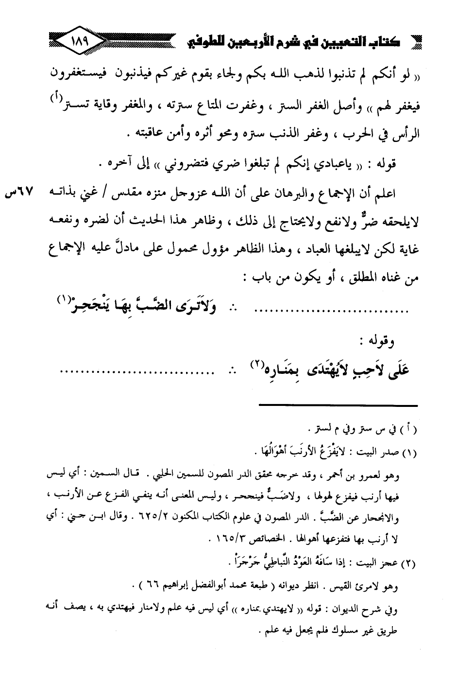 ......................... ... وَلَا تَرَى الضَّبَّ بِهَا يَنْجَحِرْ (¬1)