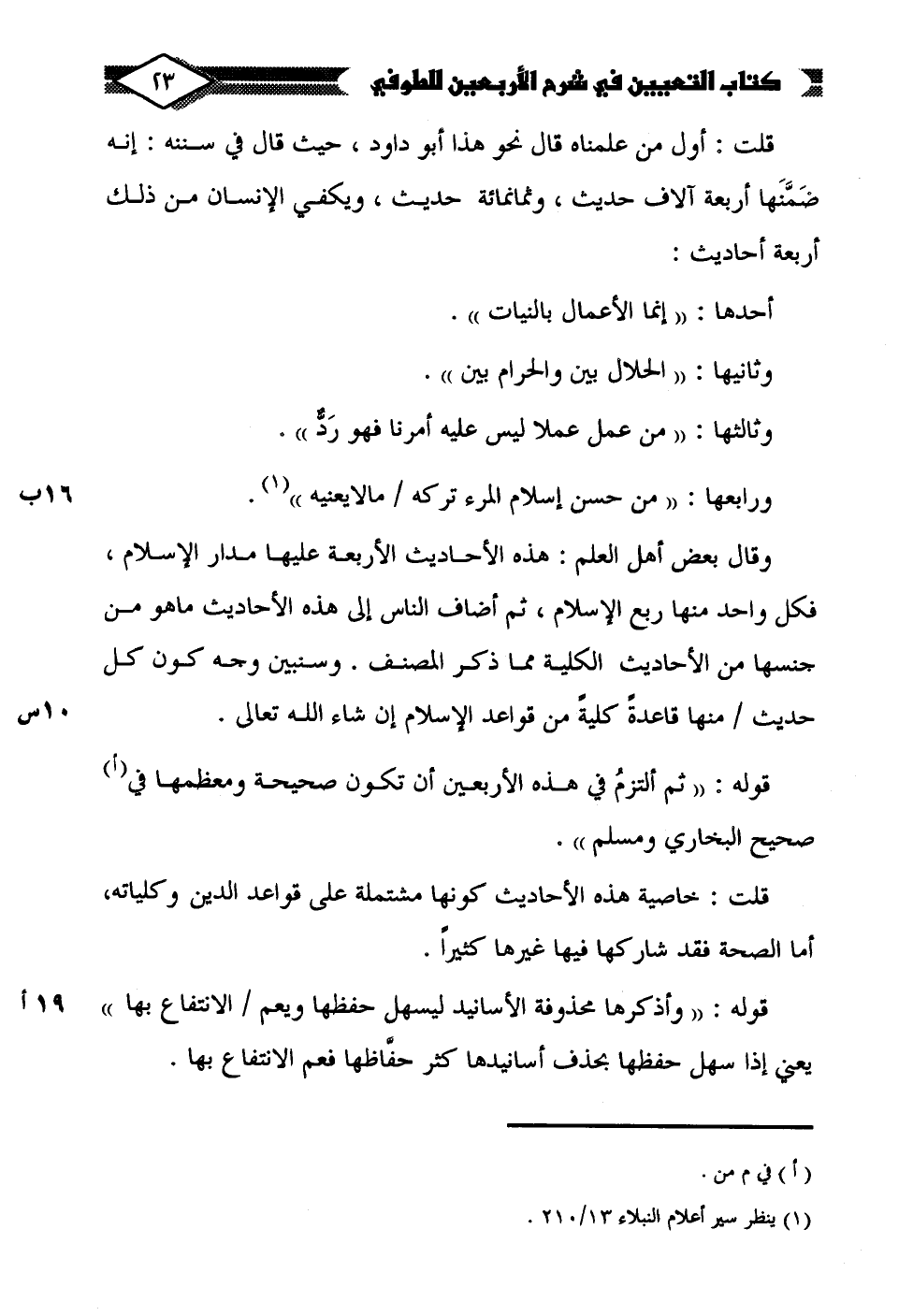 قوله: "ثم ألتزمُ في هذه الأربعين أن تكون صحيحة ومعظمها في (أ) صحيح البُخاريّ ومسلم".