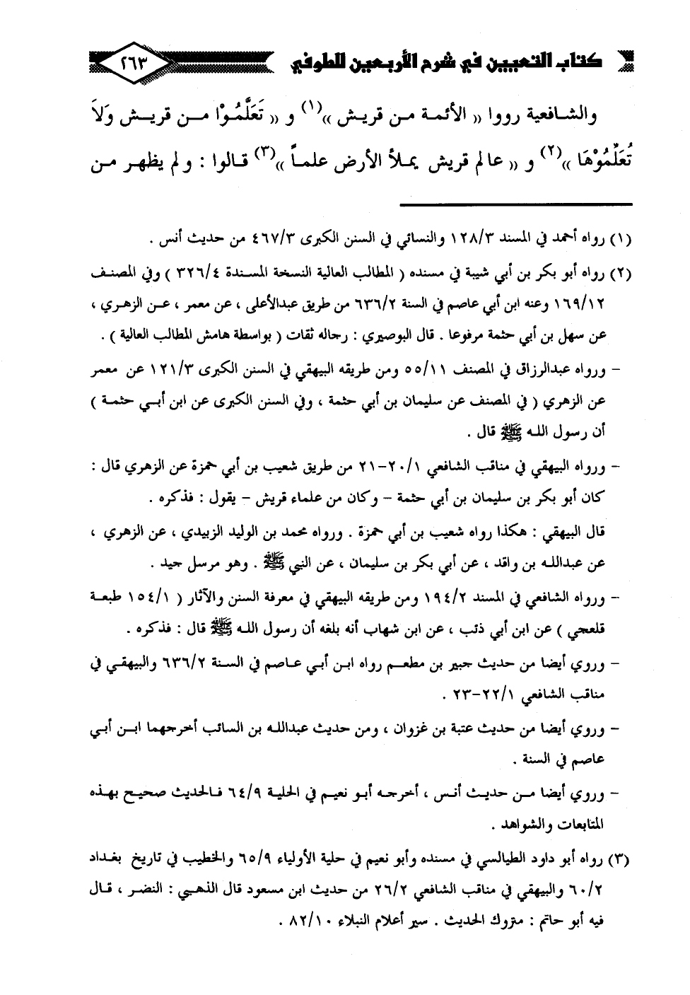 والشافعية رووا "الأئمة من قريش" (¬1) و "تَعَلَّمُوْا من قريش وَلَا تُعَلِّمُوْهَا" (¬2) و "عالم قريش يملأ الأرض علمًا" (¬3) قالوا: ولم يظهر من