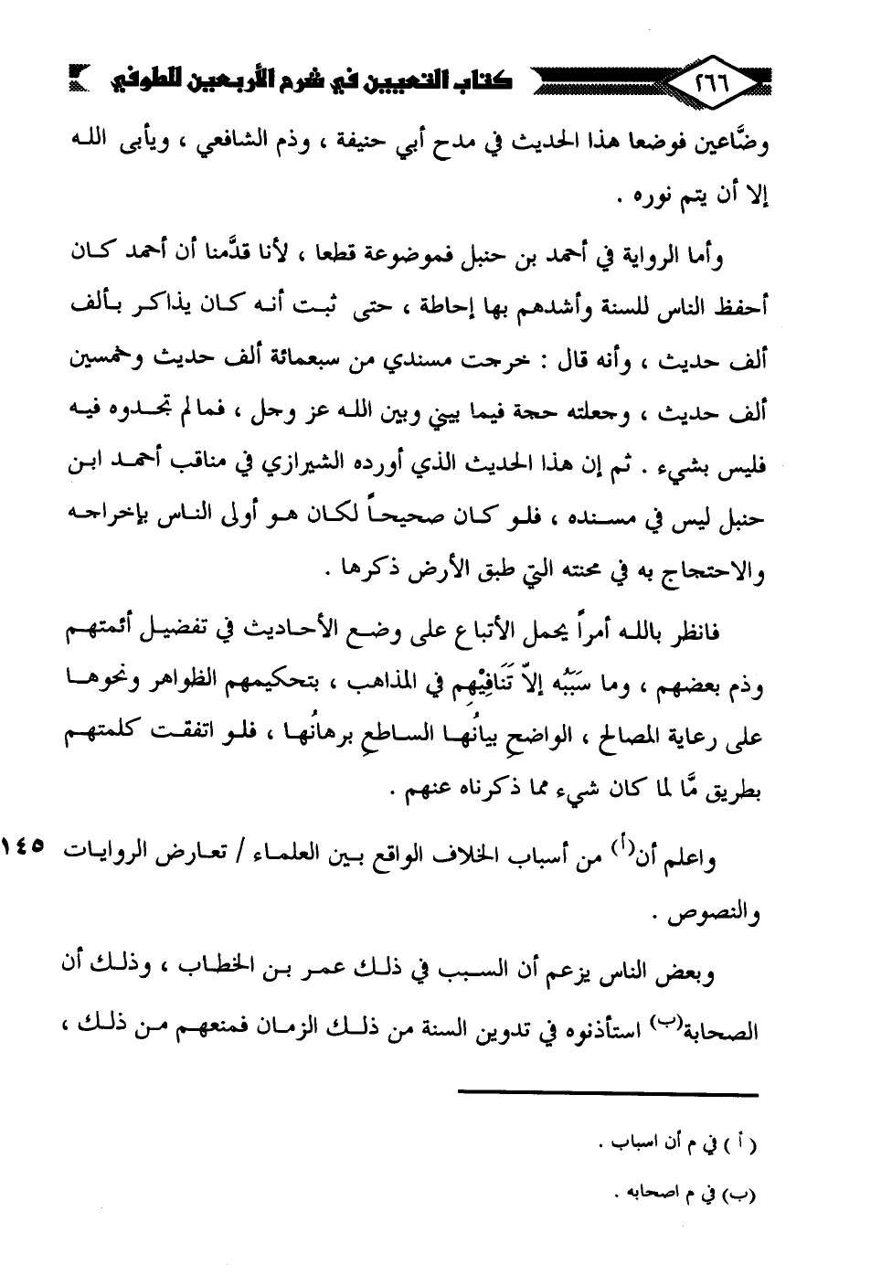 وبعض الناس يزعم أن السبب في ذلك عمر بن الخطاب، وذلك أن الصحابة (ب) استأذنوه في تدوين السنة من ذلك الزمان فمنعهم من ذلك،