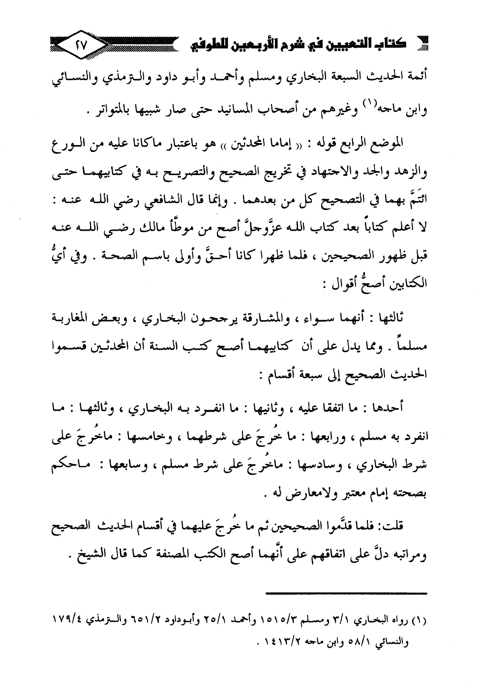 ثالثها: أنهما سواء، والمشارقة يرجحون البُخاريّ، وبعض المغاربة مسلمًا. ومما يدل على أن كتابيهما أصح كتب السنة أن المحدثين قسموا الحديث الصحيح إلى سبعة أقسام: