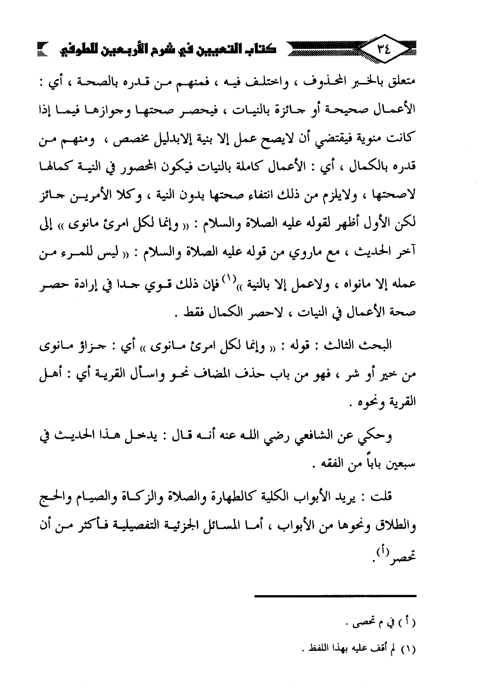 البحث الثالث: قوله: "وإنما لكل امرئ ما نوى" أي: جزاء ما نوى من خير أو شر، فهو من باب حذف المضاف نحو واسأل القرية أي: أهل القرية ونحوه.