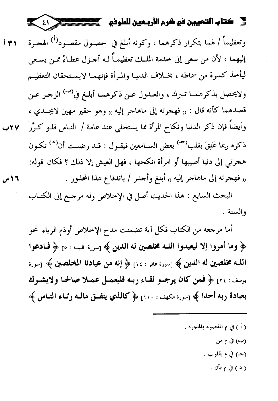 البحث السابع: هذا الحديث أصل في الإخلاص وله مرجع إلى الكتاب والسنة.