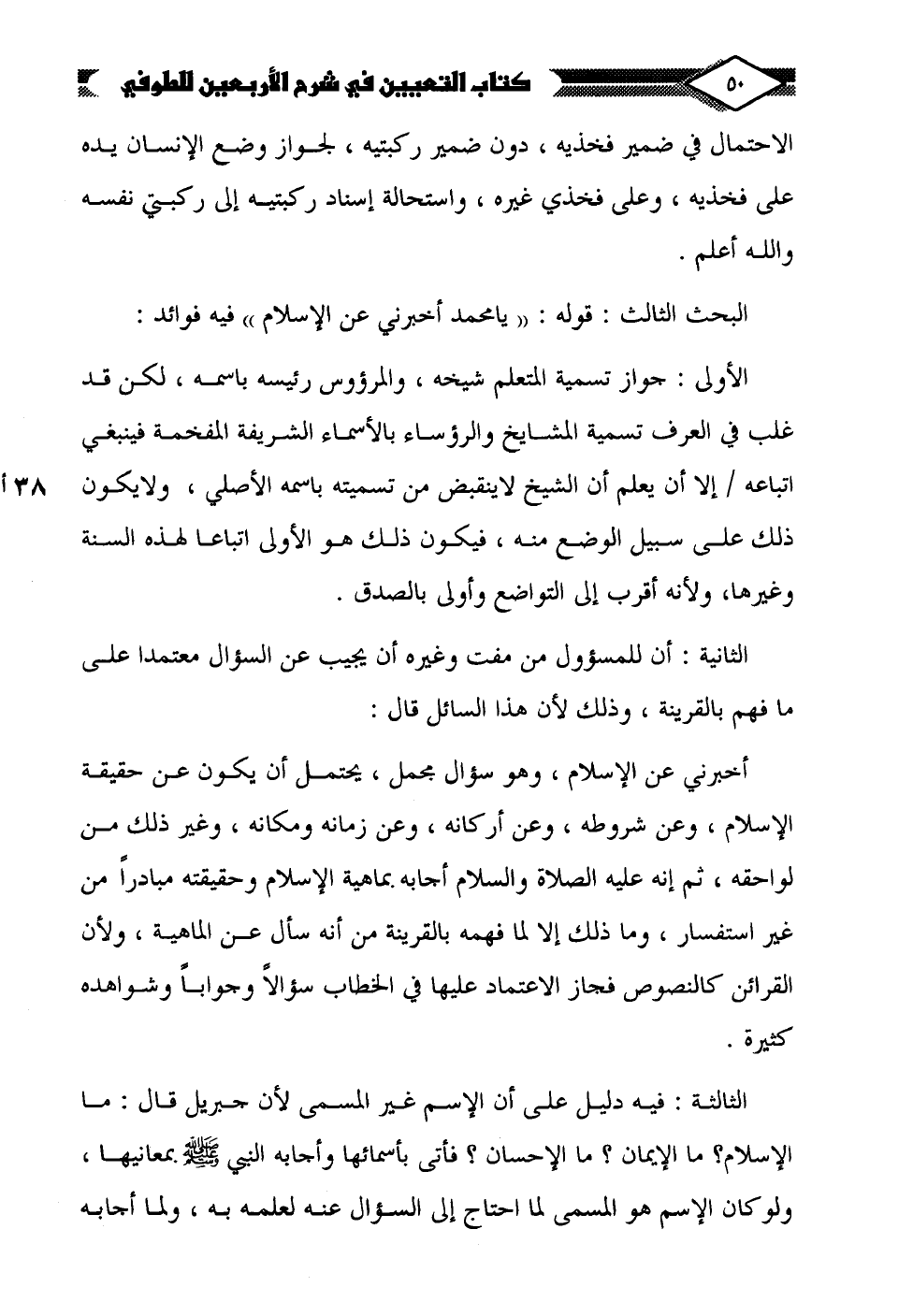 البحث الثالث: قوله: "يا محمد أخبرني عن الإسلام" فيه فوائد: