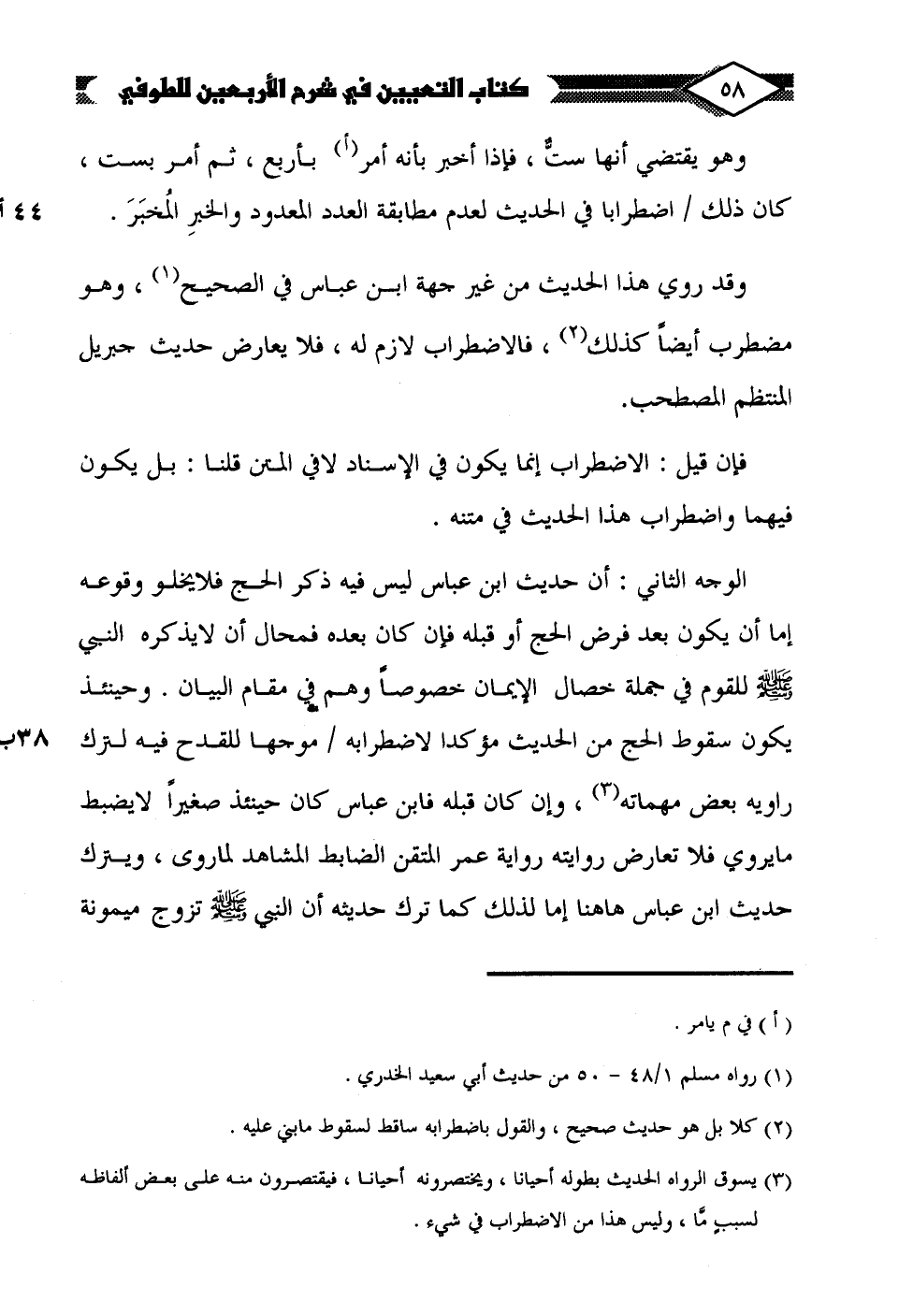 الوجه الثاني: أن حديث ابن عباس ليس فيه ذكر الحج فلا يخلو وقوعه إما أن يكون بعد فرض الحج أو قبله فإن كان بعده فمحال أن لا يذكره النبي - صلى الله عليه وسلم - للقوم في جملة خصال الإيمان خصوصًا وهم في مقام البيان. وحينئذ يكون سقوط الحج من الحديث مؤكدا لاضطرابه موجها للقدح فيه لترك راويه بعض مهماته (¬3)، وإن كان قبله فابن عباس كان حينئذ صغيرًا لا يضبط ما يروي فلا تعارض روايته رواية عمر المتقن الضابط المشاهد لما روى، ويترك حديث ابن عباس هاهنا إما لذلك كما ترك حديثه أن النبي - صلى الله عليه وسلم - تزوج ميمونة