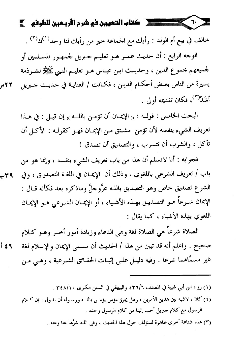 البحث الخامس: قوله: "الإيمان أن تؤمن بالله" إن قيل: في هذا تعريف الشيء بنفسه لأن تؤمن مشتق من الإيمان فهو كقوله: الأكل أن تأكل، والشرب أن تتسرب، والتصديق أن تصدق!