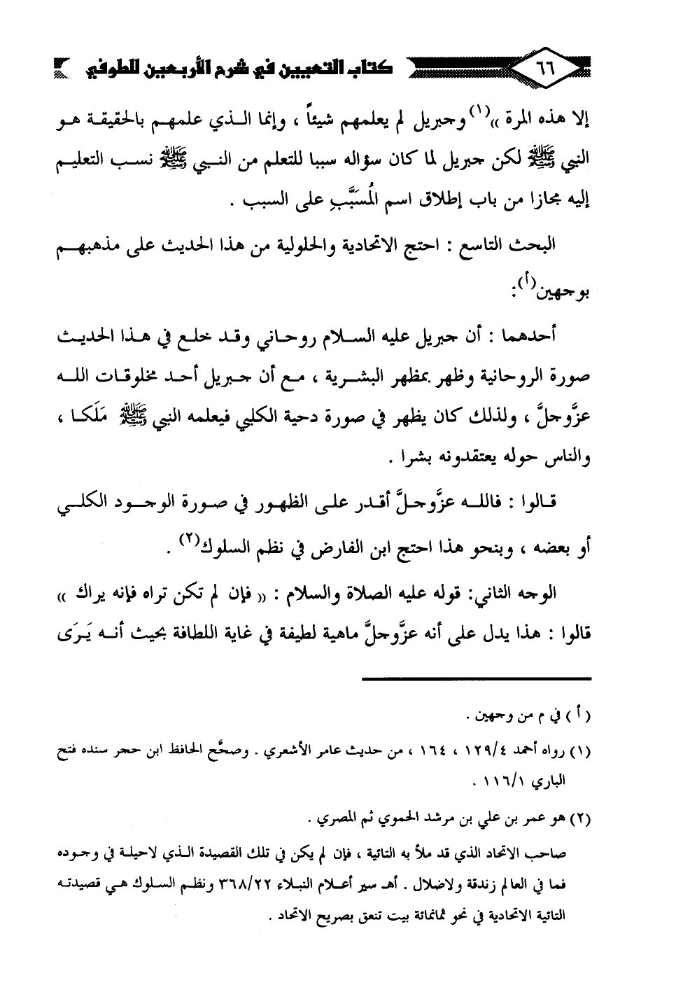 البحث التاسع: احتج الاتحادية والحلولية من هذا الحديث على مذهبهم بوجهين (أ):