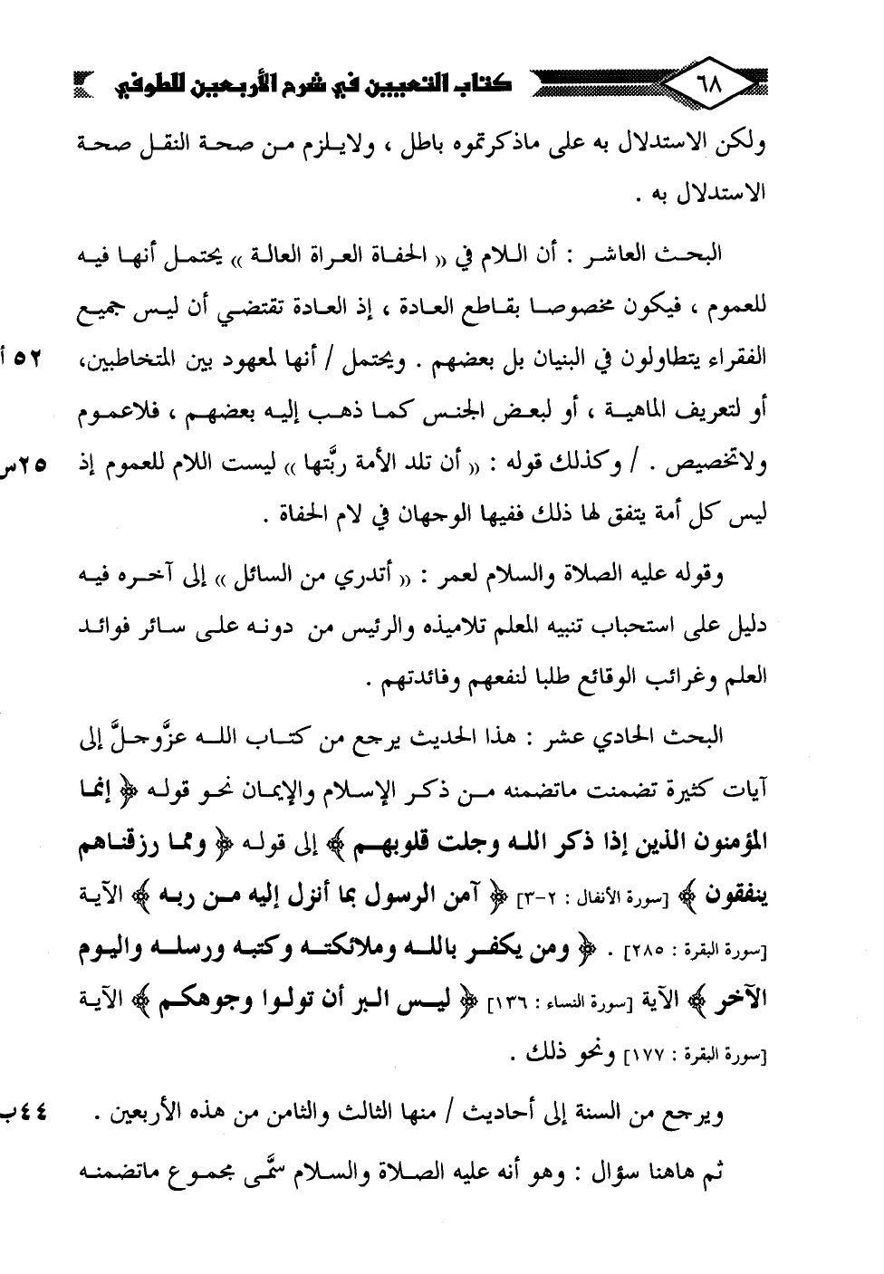 البحث الحادي عشر: هذا الحديث يرجع من كتاب الله عزَّ وجلَّ إلى آيات كثيرة تضمنت ما تضمنه من ذكر الإسلام والإيمان نحو قوله {إنما المؤمنون الذين إذا ذكر الله وجلت قلوبهم} إلى قوله {ومما رزقناهم ينفقون} [سورة الأنفال: 2 - 3] {آمن الرسول بما أنزل إليه من ربه} الآية [سورة البقرة: 285]. {ومن يكفر بالله وملائكته وكتبه ورسله واليوم الآخر} الآية [سورة النساء: 136] {ليس البر أن تولوا وجوهكم} الآية [سورة البقرة: 177] ونحو ذلك.