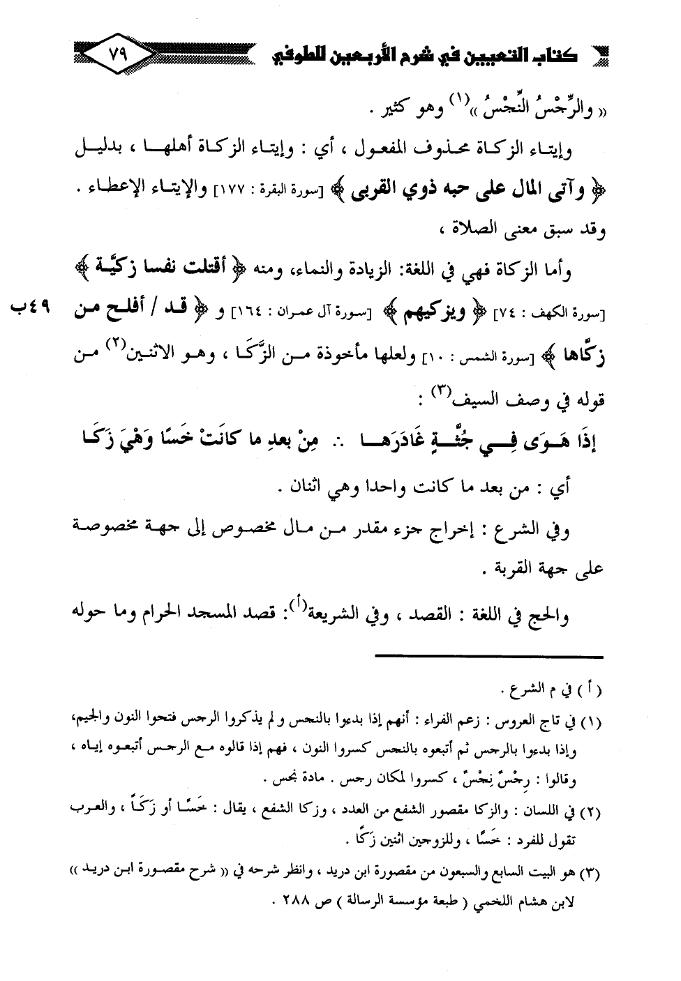 وأما الزكاة فهي في اللغة: الزيادة والنماء، ومنه {أقتلت نفسا زكيَّة} [سورة الكهف: 74] {ويزكيهم} [سوره آل عمران: 164] و {قد أفلح من زكَّاها} [سورة الشمس: 10] ولعلها مأخوذة من الزَّكَا، وهو الاثنين (¬2) من قوله في وصف السيف (¬3):