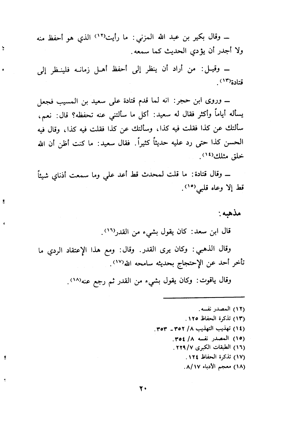 - وقيل: من أراد أن ينظر الى أحفظ أهل زمانه فلينظر الى قتادة (13) .