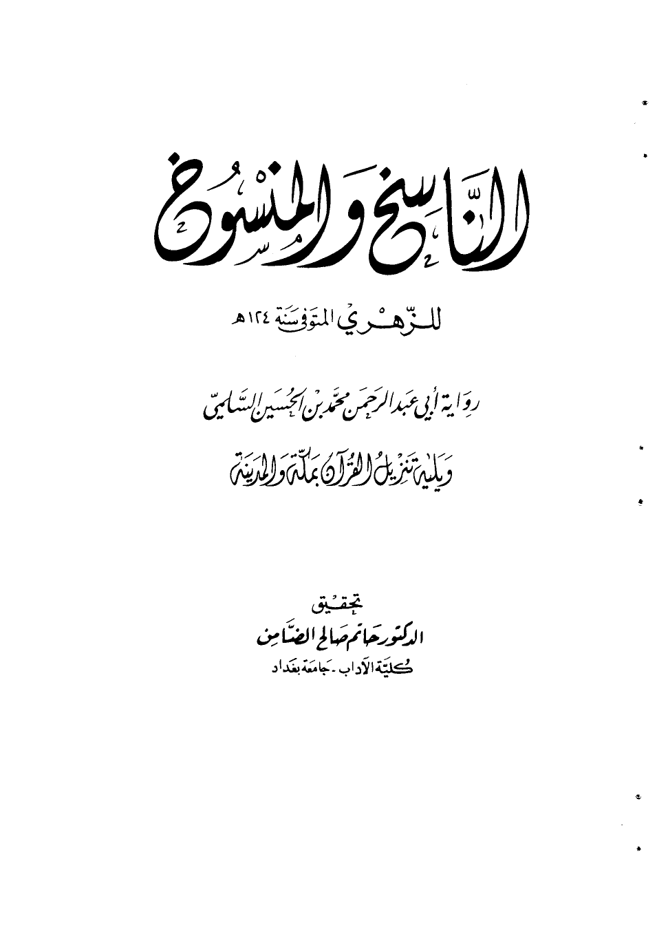 كتاب الناسخ والمنسوخ وتنزيل القرآن المنسوب للزهري