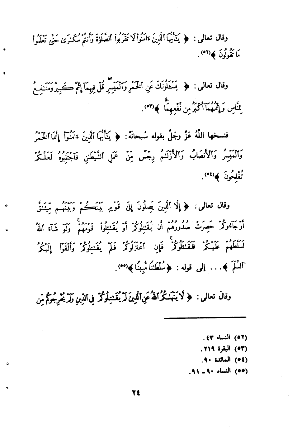 وقال تعالى: {يا أَيُّهَا الَّذِينَ آمَنُوا لا تَقْرَبُوا الصَّلاةَ وَأَنْتُمْ سُكارى حَتَّى تَعْلَمُوا ما تَقُولُونَ} (¬52).