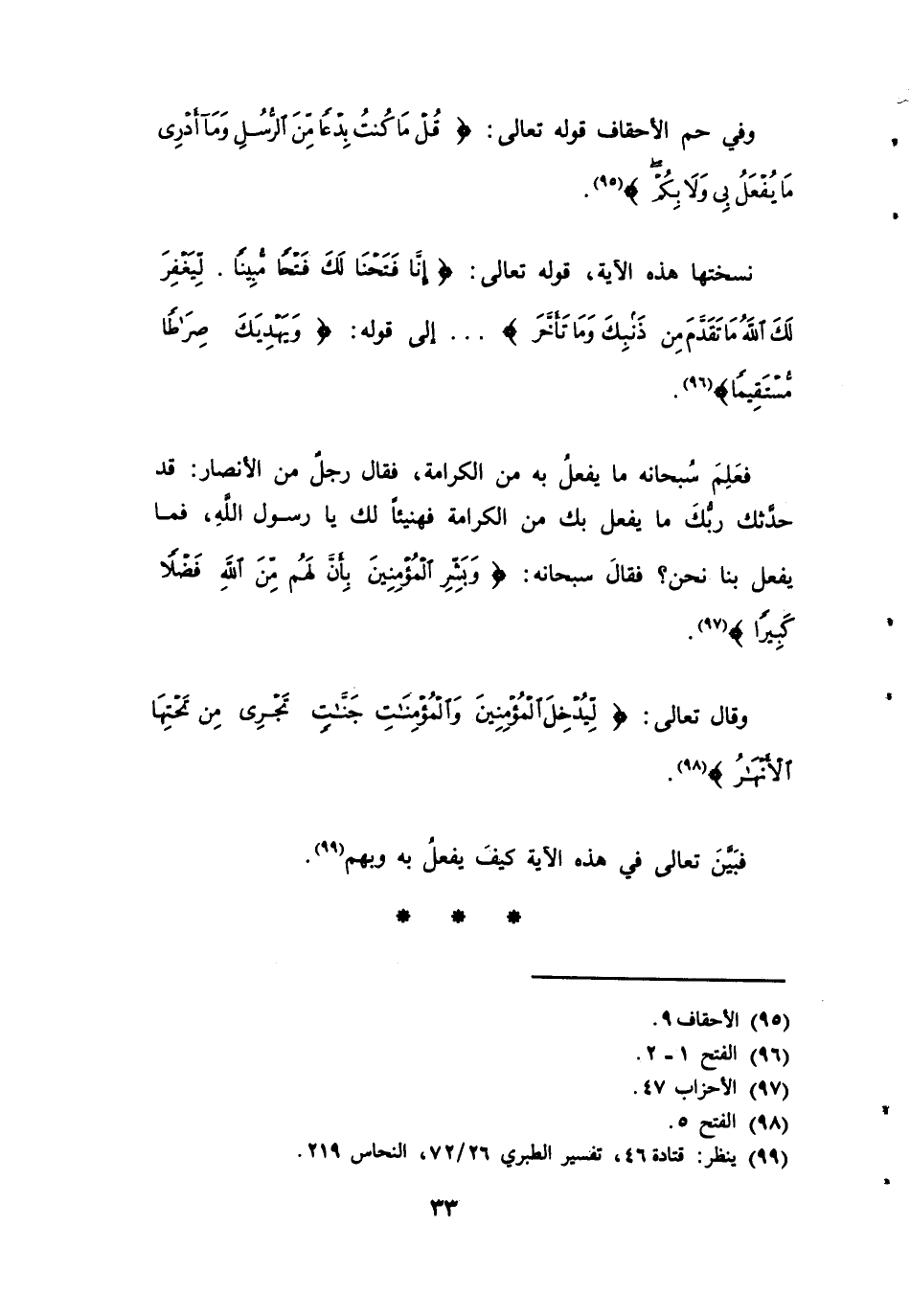 (¬99) ينظر: قتادة 46، تفسير الطبري 26/ 72، النحاس 219.