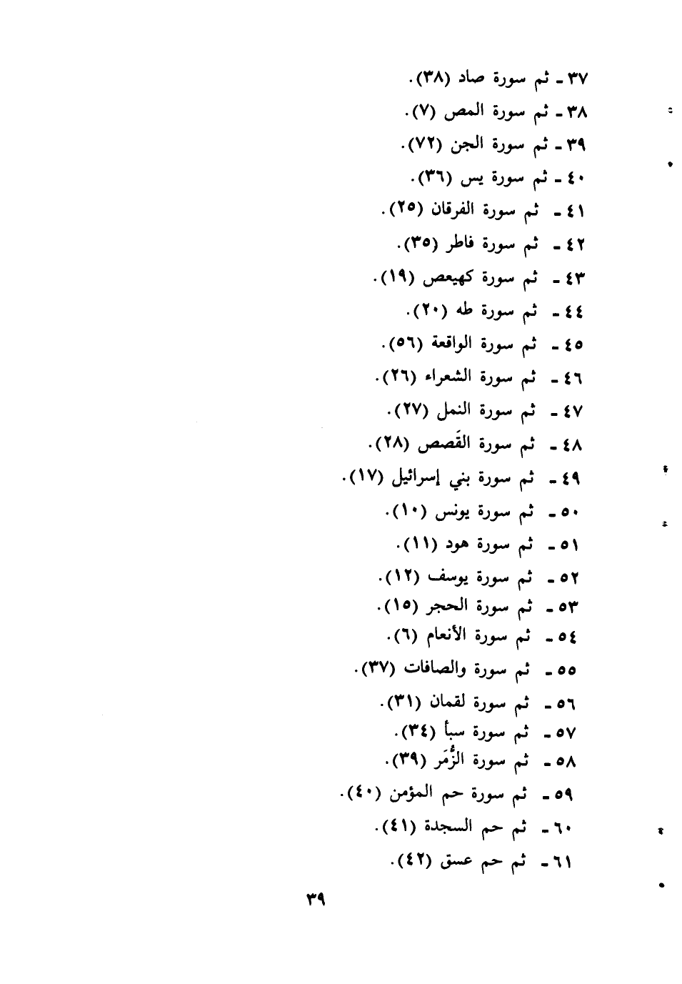 44 - ثم سورة طه (20) 45 - ثم سورة الواقعة (56).