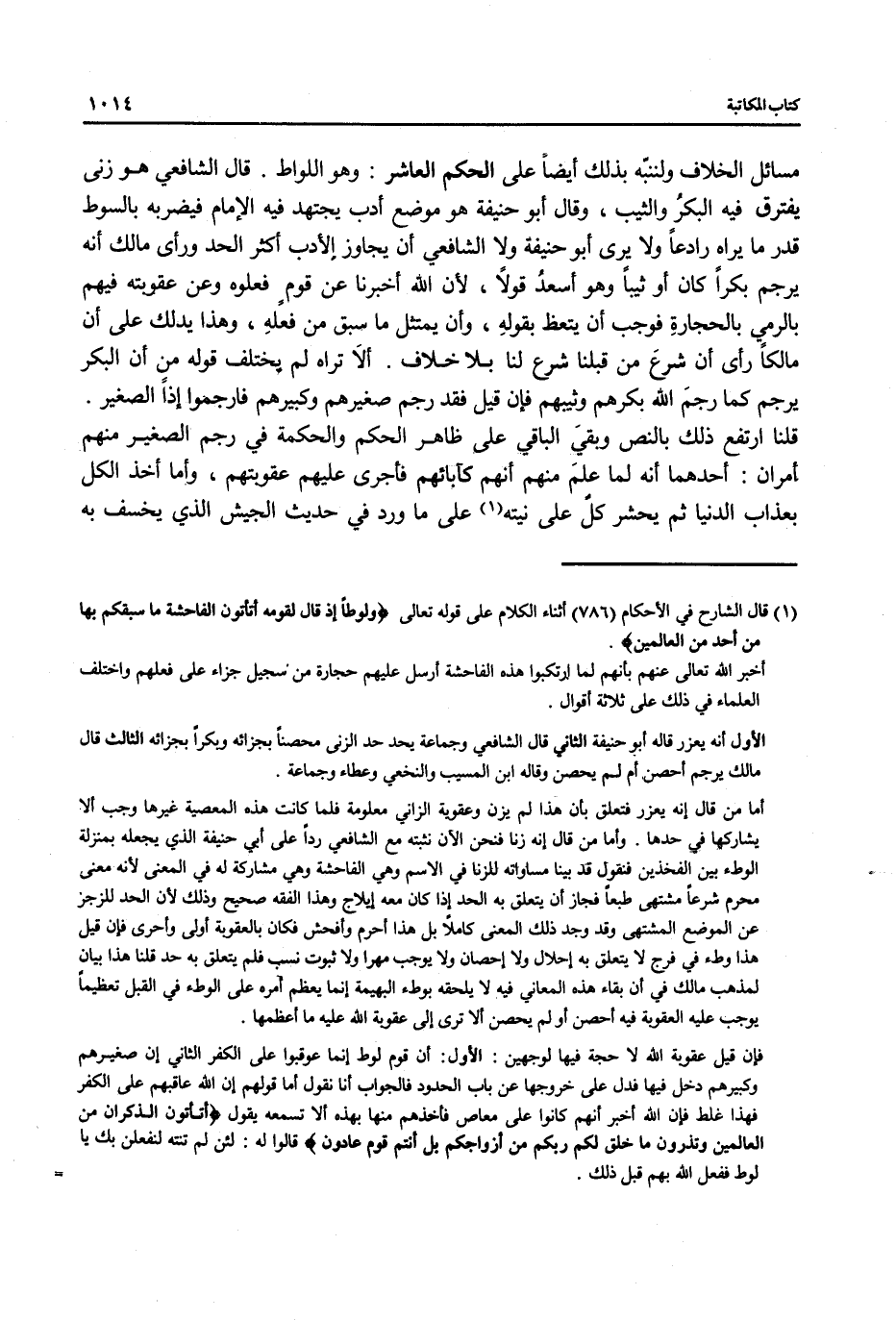 (¬1) قال الشارح في الأحكام (786) أثناء الكلام على قوله تعالى (ولوطًا إذ قال لقومه أتأتون الفاحشة ما سبقكم بها من أحد من العالمين).