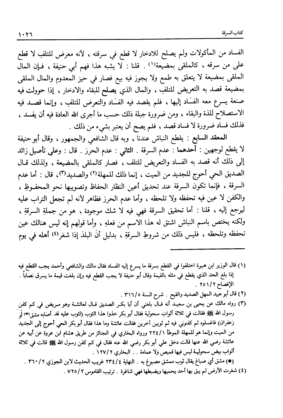 (¬1) قال الوزير ابن هبيرة اختلفوا في القطع بسرقة ما يسرع إليه الفساد فقال مالك والشافعي وأحمد يجب القطع فيه إذا بلغ الحد الذي يقطع في مثله بالقيمة وقال أبو حنيفة لا يجب القطع فيه وإن بلغت قيمة ما يسرق نصاباً. الإفصاح 2/ 251.