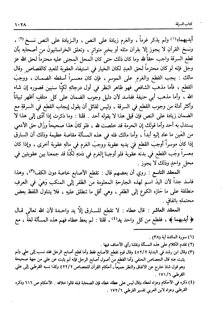 المعقد العاشر: قال عطاء: لا تقطع للسارق إلا يد واحدة لأن الله تعالىِ قال {أيديهما}، فقطع من كلِ واحد يد (¬4)، قلنا: لم يعط عطاء فهم هذه المسالة لغةً، مع