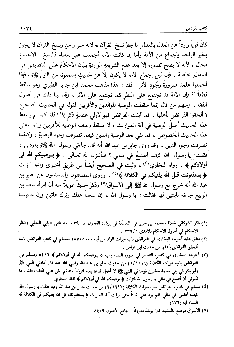 (¬4) مسلم في كتاب الفرائض باب ميراث الكلالة (1616/ 6) من حديث جابر بن عبد الله وفيه فقلت يا رسول الله كيف أقضي في مالي فلم يرد علي شيئًا حتى نزلت آية الميراث {يَسْتَفْتُونَكَ قُلِ اللَّهُ يُفْتِيكُمْ فِي الْكَلَالَةِ} النساء آية (176).
