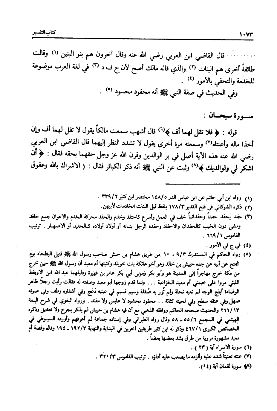 (¬2) ذكره الشوكاني في فتح القدير 3/ 178 بلفظ قيل البنات الخادمات لأبيهن.