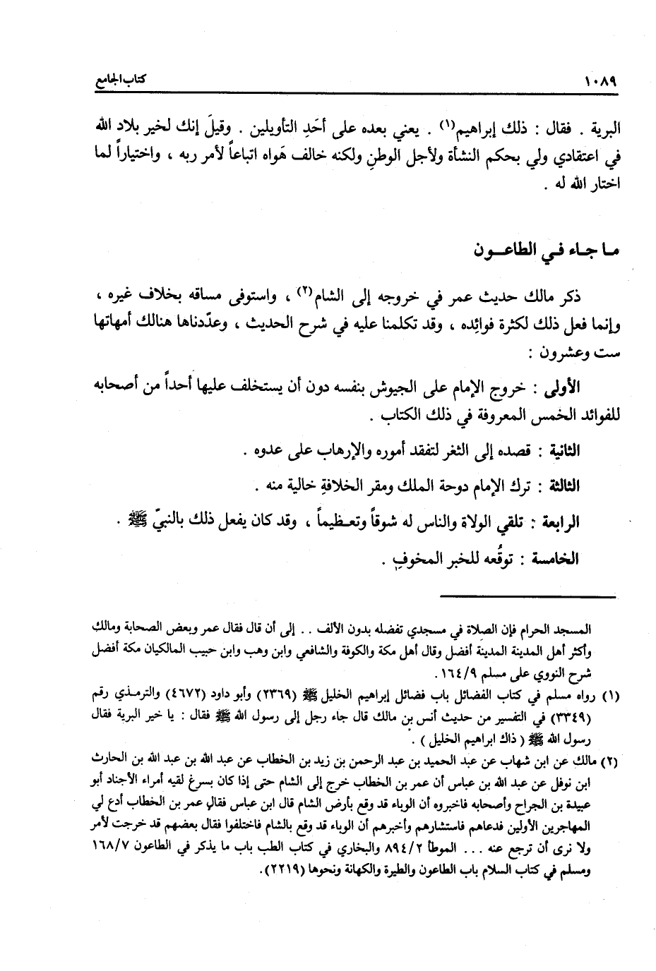 ذكر مالك حديث عمر في خروجه إلى الشام (¬2)، واستوفى مساقه بخلاف غيره، وإنما فعل ذلك لكثرة فوائِده، وقد تكلمنا عليه في شرح الحديث، وعدّدناها هنالك أمهاتها ست وعشرون: