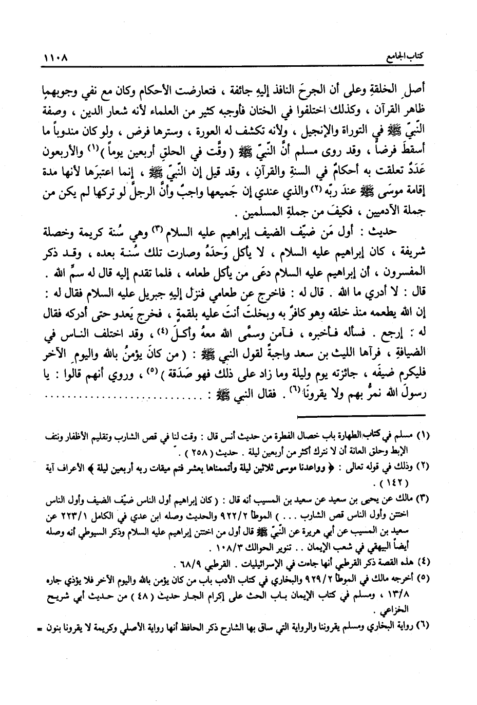 (¬3) مالك عن يحيى بن سعيد عن سعيد بن المسيب أنه قال: (كان إبراهيم أول الناس ضيّف الضيف وأول الناس اختتن وأول الناس قص الشارب ...) الموطأ 2/ 922 والحديث وصله ابن عدي في الكامل 1/ 223 عن سعيد بن المسيب عن أبي هريرة عن النّبي - صلى الله عليه وسلم - قال أول من اختتن إبراهيم عليه السلام وذكر السيوطي أنه وصله أيضًا البيهقي في شعب الإيمان .. تنوير الحوالك 3/ 108.