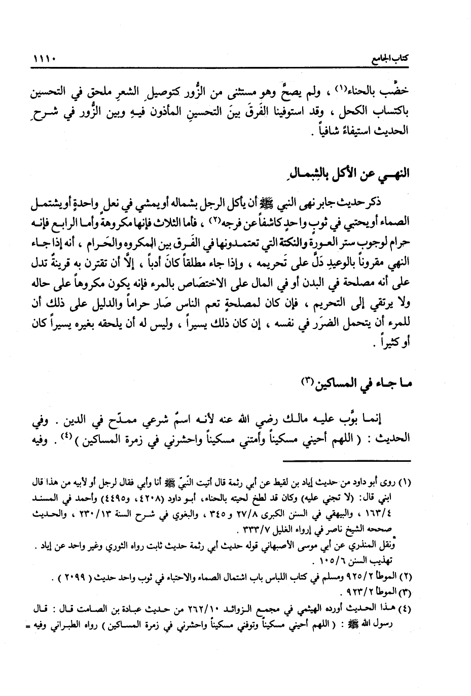 ذكرحديث جابر نهى النبي - صلى الله عليه وسلم - أن يأكل الرجل بشماله أو يمشي في نعل واحدةٍ أو يشتمل الصماء أو يحتبي في ثوبٍ واحدٍ كاشفًا عن فرجه (¬2)، فأما الثلاث فإنها مكروهة وأما الرابع فإنه حرام لوجوب ستر العورة والنكتة التي تعتمدونها في الفَرق بين المكروه والحَرام، أنه إذا جاء النهي مقرونًا بالوعيدِ دلَّ على تَحريمه، وإذا جاء مطلقًا كانَ أدبًا، إلَا أن تقترن به قرينةٌ تدل على أنه مصلحة في البدن أو في المال على الاختصَاص بالمرء فإنه يكون مكروهًا على حاله ولا يرتقي إلى التحريم، فإن كان لمصلحةٍ تعم الناس صَار حراماً والدليل على ذلك أن للمرء أن يتحمل الضرَر في نفسه، إن كان ذلك يسيرًا، وليس له أن يلحقه بغيره يسيرًا كان أو كثيرًا.