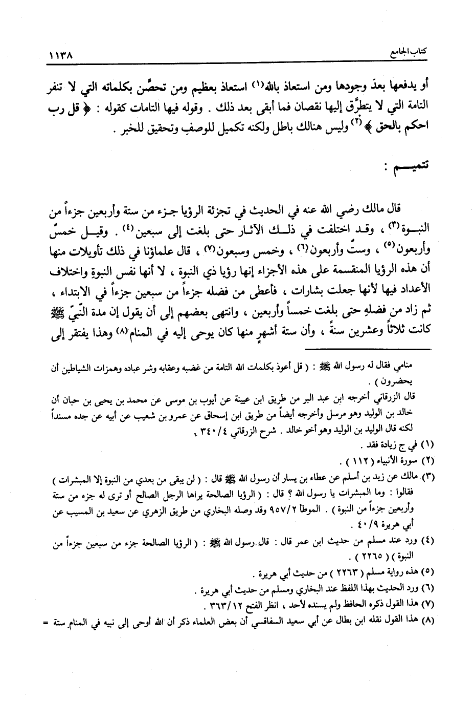 (¬4) ورد عند مسلم من حديث ابن عمر قال: قال رسول الله - صلى الله عليه وسلم - (الرؤيا الصالحة جزء من سبعين جزءًا من النبوة) (2265).