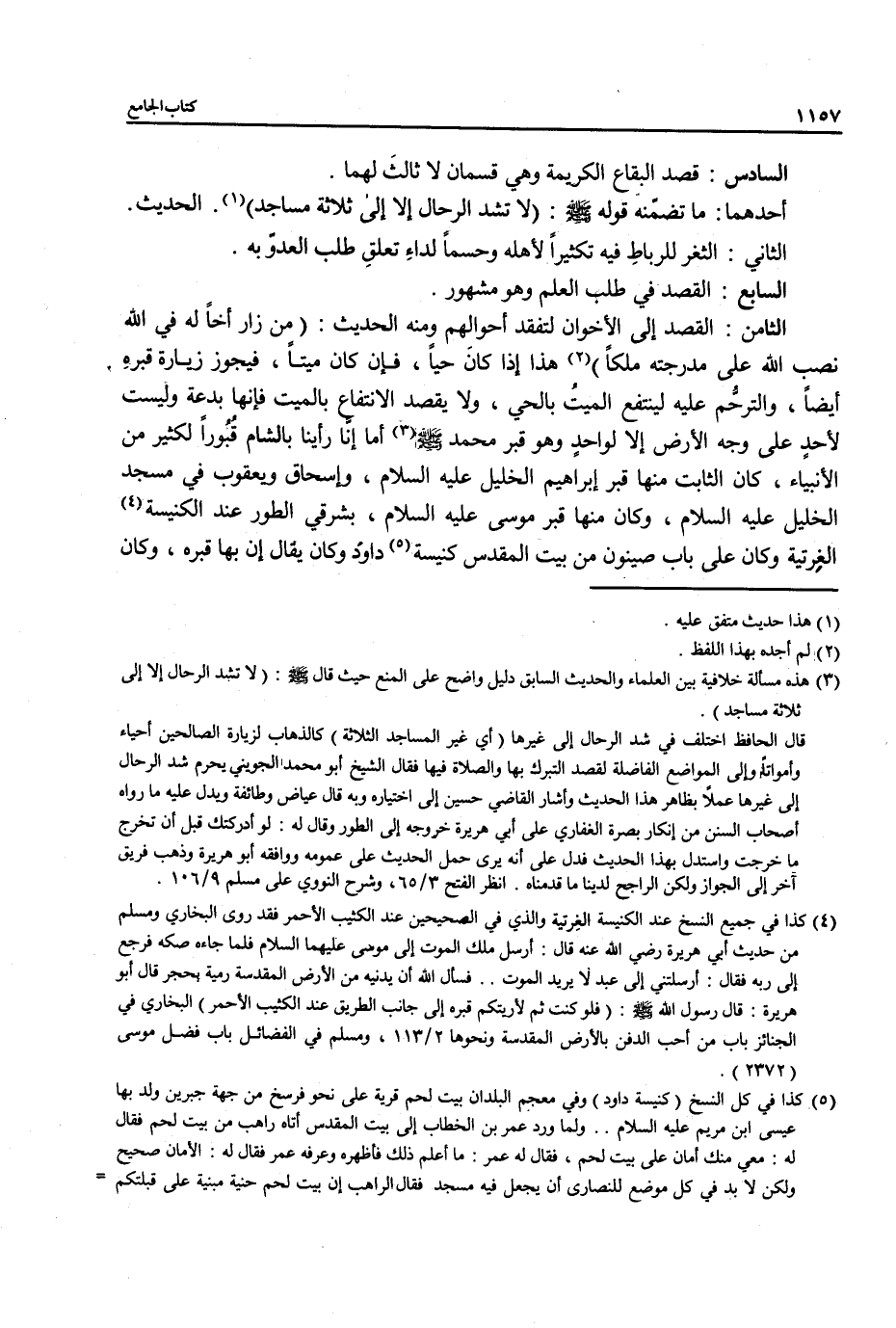 (¬3) هذه مسألة خلافية بين العلماء والحديث السابق دليل واضح على المنع حيث قال - صلى الله عليه وسلم -: (لا تشد الرحال إلا إلى ثلاثة مساجد).