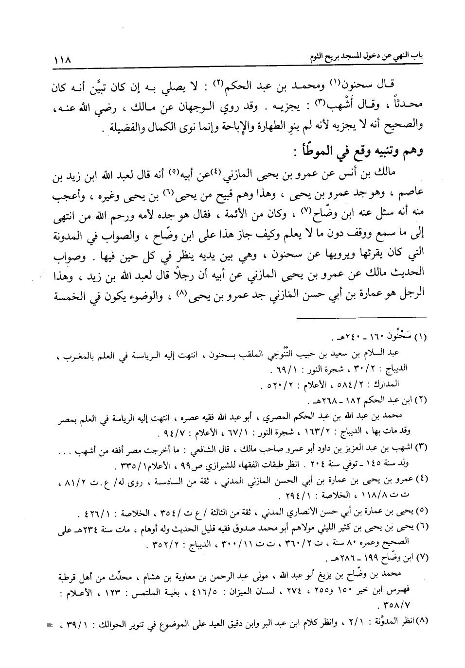 (¬8) انظر المدوَّنة: 1/ 2، وانظر كلام ابن عبد البر وابن دقيق العيد على الموضوع في تنوير الحوالك: 1/ 39،=