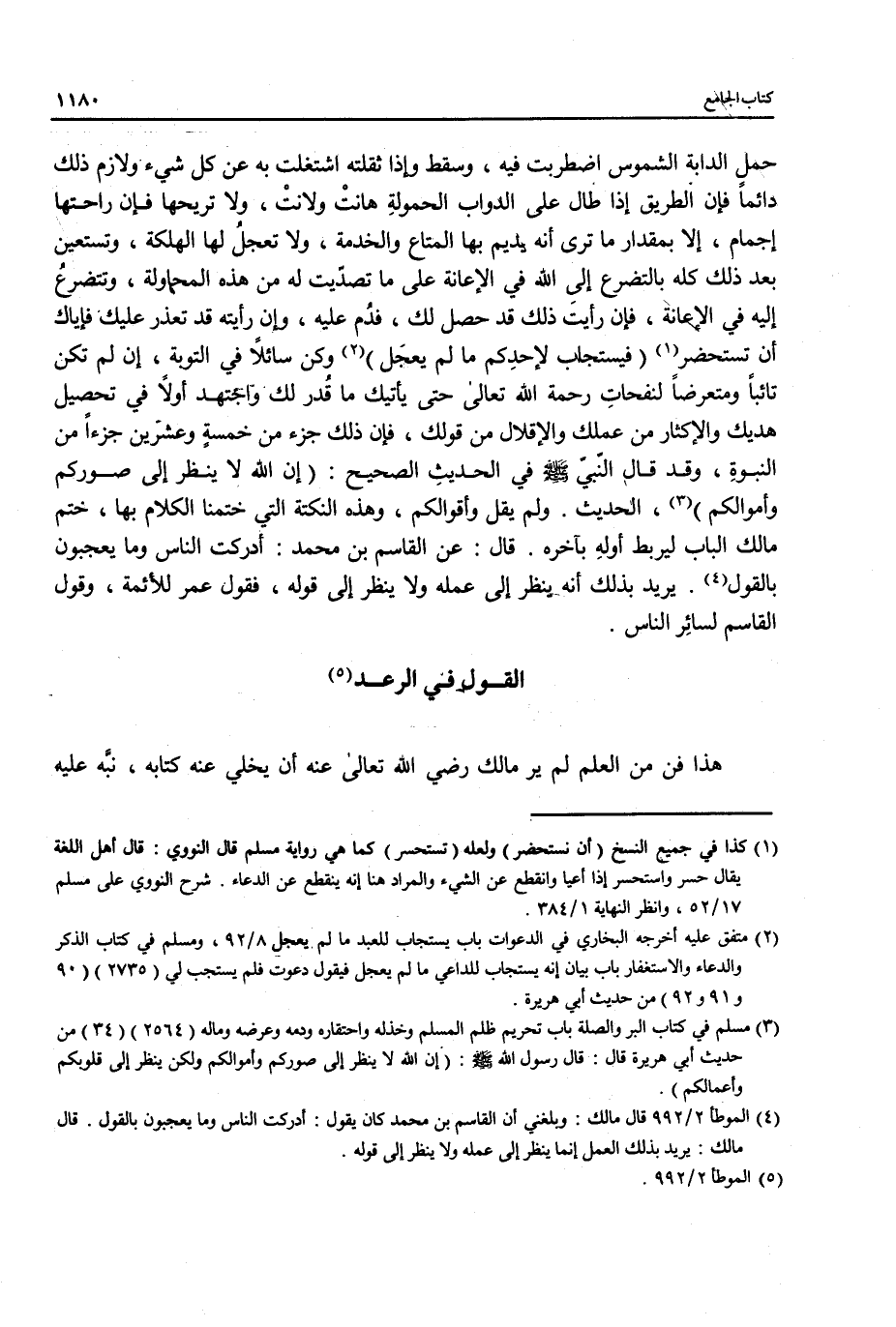 (¬4) الموطأ 2/ 992 قال مالك: وبلغني أن القاسم بن محمد كان يقول: أدركت الناس وما يعجبون بالقول. قال مالك: يريد بذلك العمل إنما ينظر إلى عمله ولا ينظر إلى قوله.