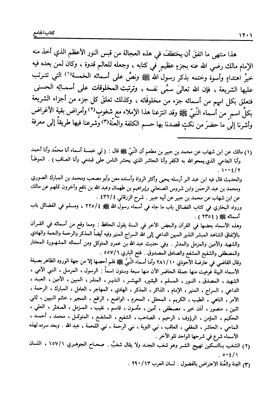 (¬1) مالك عن ابن شهاب عن محمَّد بن جبير بن مطعم أن النّبيّ - صلى الله عليه وسلم - قال: (لي خمسة أسماء أنا محمّد وأنا أحمد وأنا الماحي الذي يمحو الله به الكفر وأنا الحاشر الذي يحشر الناس على قدمي وأنا العاقب). الموطأ 2/ 1004.