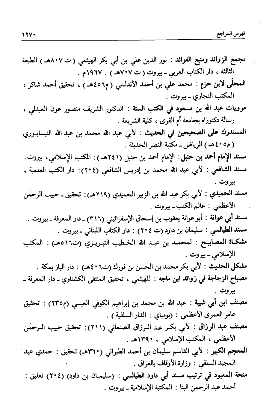 مجمع الزوائد ومنبع الفوائد: نور الدين علي بن أبي بكر الهيثمي (ت 807 هـ) الطبعة الثالثة، دار الكتاب العربي - بيروت (ت 707 هـ). 1967 م.