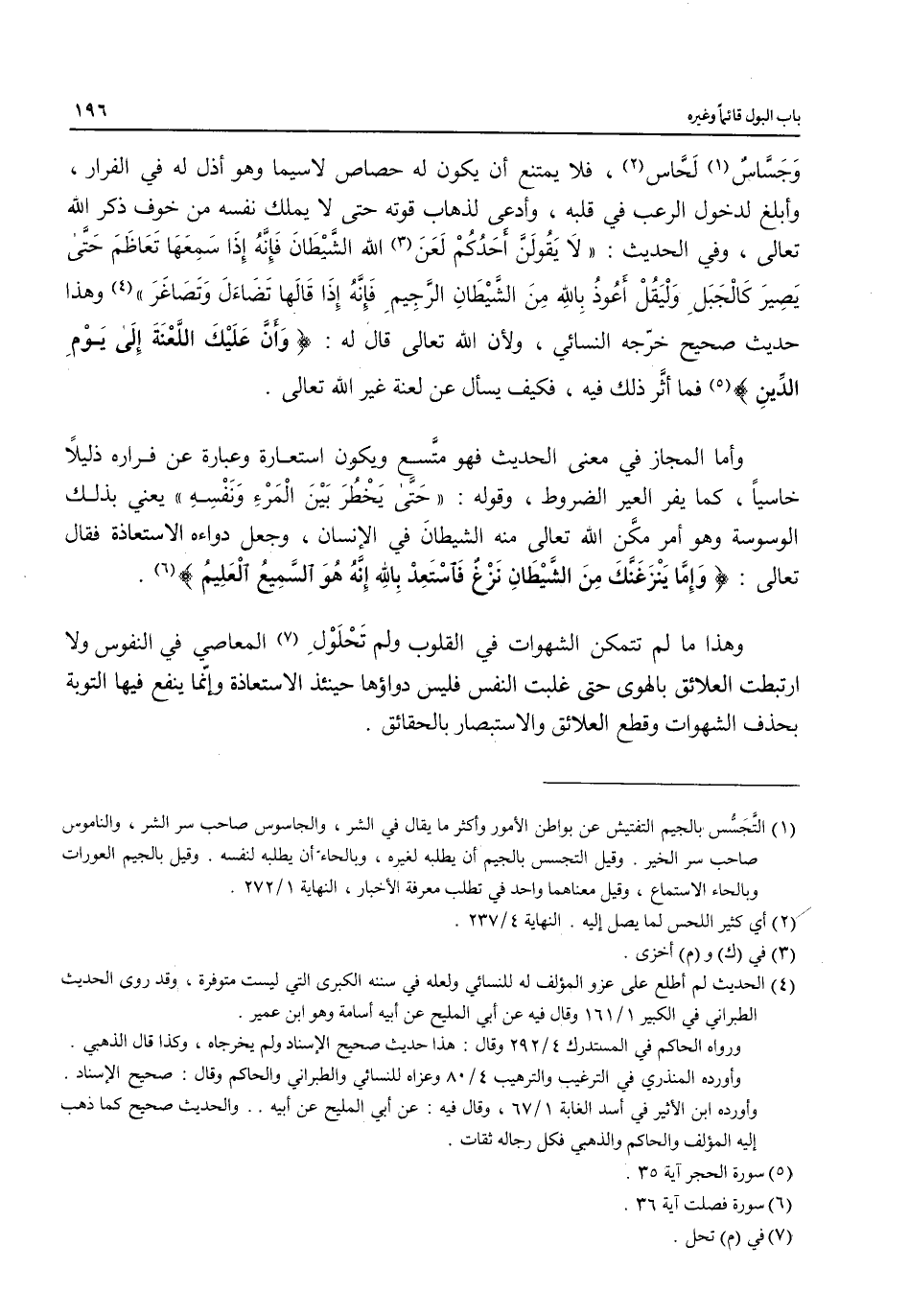 وهذا ما لم تتمكن الشهوات في القلوب ولم تَحْلَوْلِ (¬7) المعاصي في النفوس ولا ارتبطت العلائق بالهوى حتى غلبت النفس فليس دواؤها حينئذ الاستعاذة وإنّما ينفع فيها التوبة بحذف الشهوات وقطع العلائق والاستبصار بالحقائق.