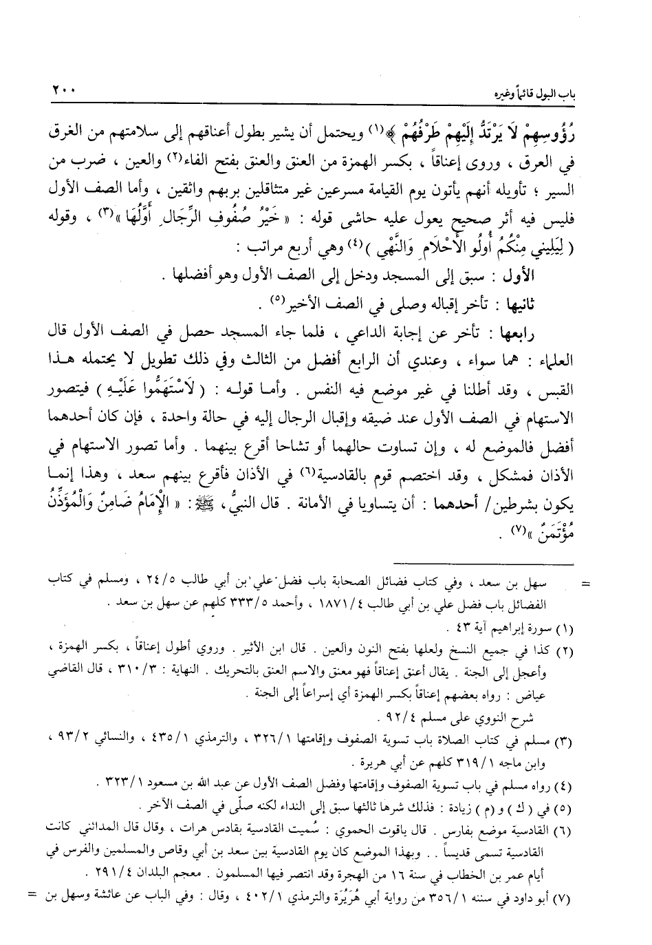 (¬4) رواه مسلم في باب تسوية الصفوف وإقامتها وفضل الصف الأول عن عبد الله بن مسعود 1/ 323.