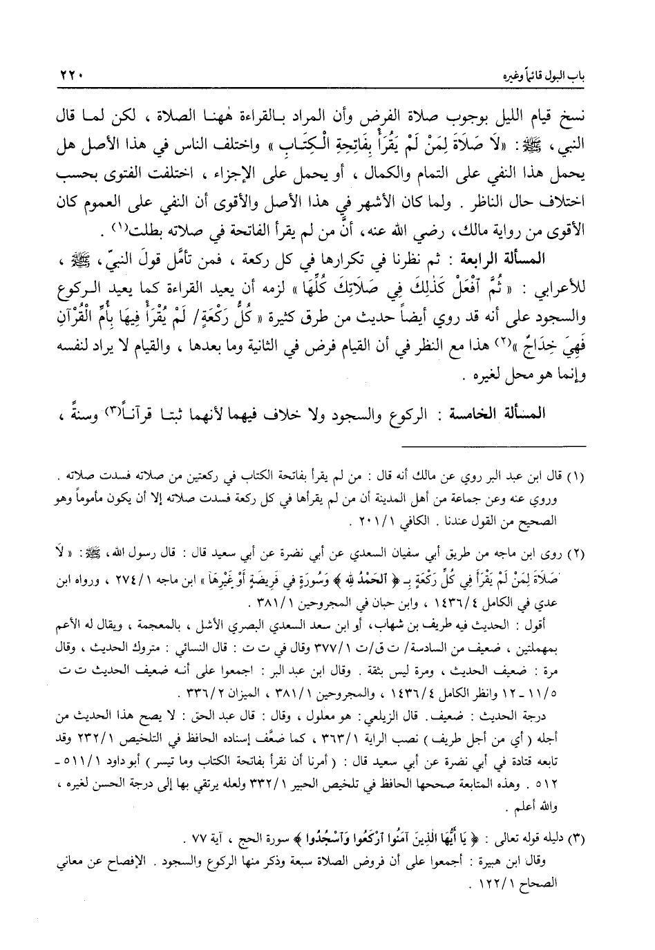 (¬3) دليله قوله تعالى: {يَا أَيُّهَا الَّذِينَ آمَنُوا ارْكَعُوا وَاسْجُدُوا} سورة الحج، آية 77.