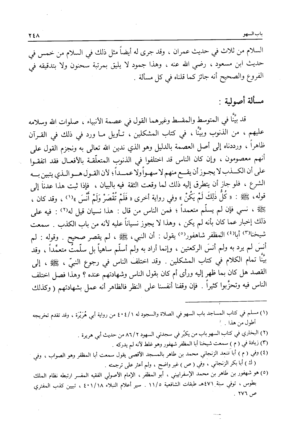 (¬5) هو شهفور بن طاهر بن محمَّد الإسفراييني، أبو المظفر، الإِمام الأصولي الفقيه المفسر ارتبطه نظام الملك بطوس، توفي سنة 471 هـ طبقات الشافعية 5/ 11. سير أعلام النبلاء 18/ 401، تبيين كذب المفتري ص 276.