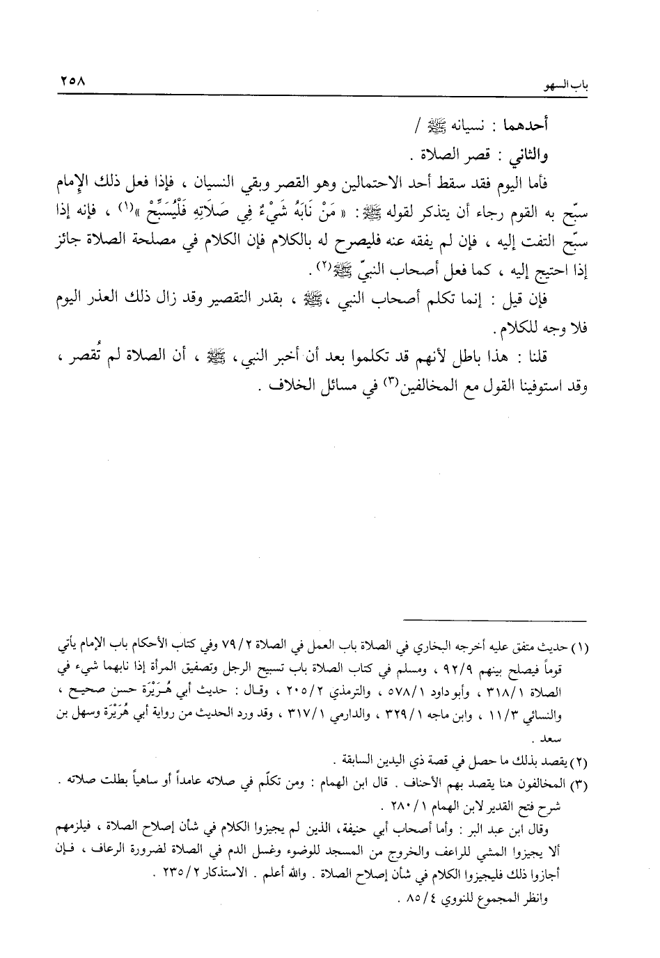 (¬2) يقصد بذلك ما حصل في قصة ذي اليدين السابقة.