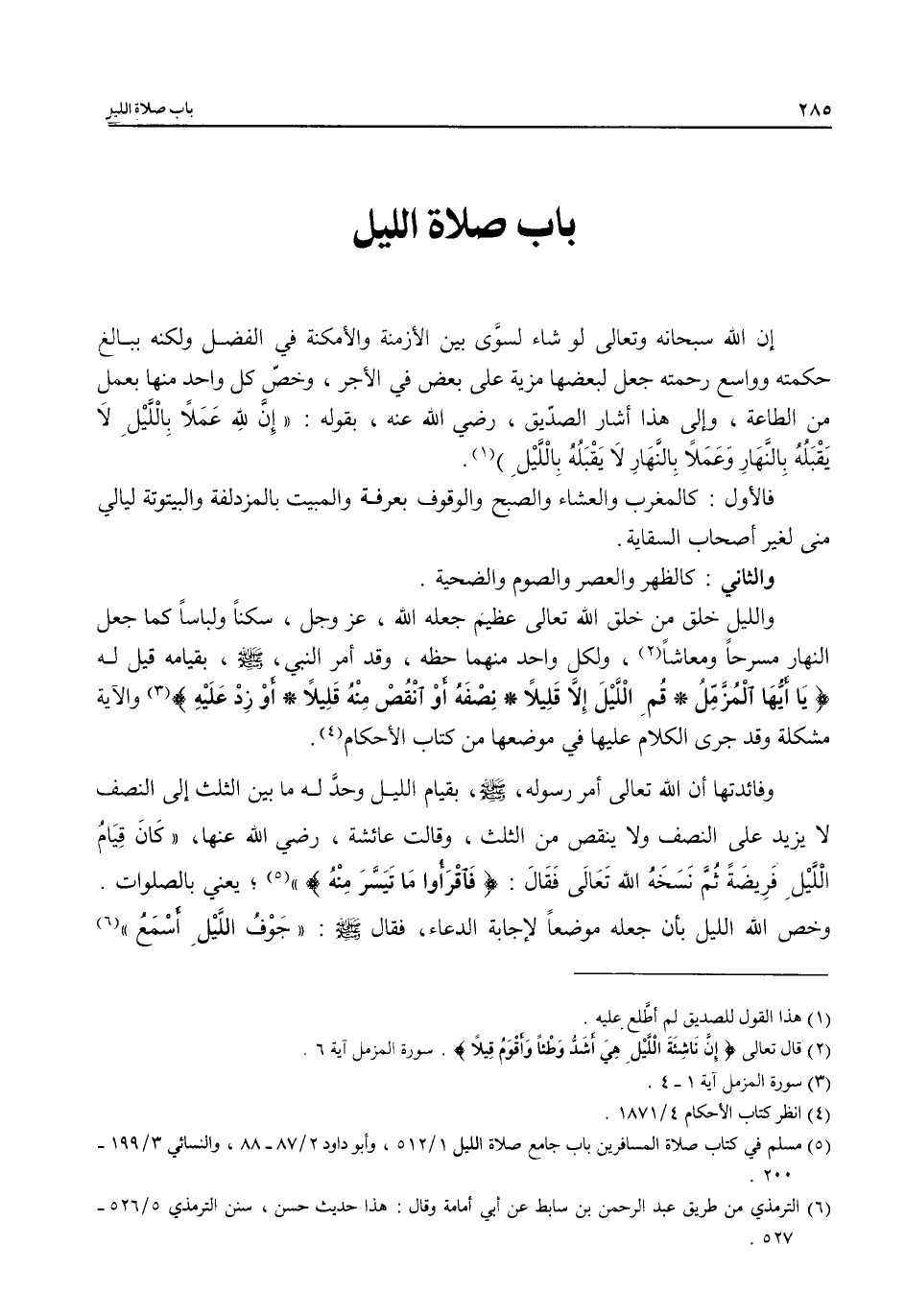 (¬5) مسلم في كتاب صلاة المسافرين باب جامع صلاة الليل 1/ 512، وأبو داود 2/ 87 - 88، والنسائي 3/ 199 - 200.