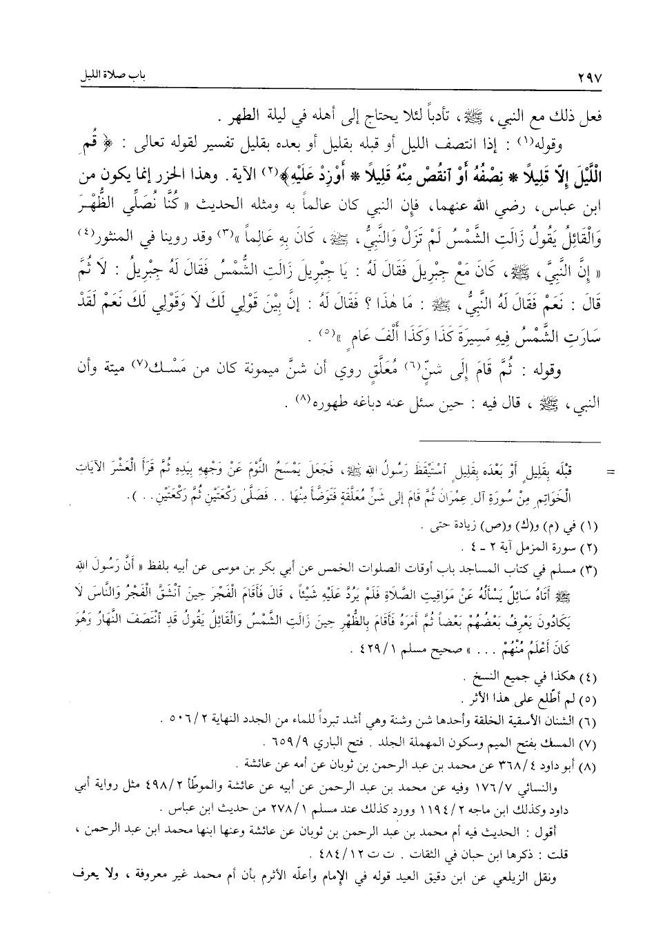 (¬8) أبو داود 4/ 368 عن محمد بن عبد الرحمن بن ثوبان عن أمه عن عائشة. والنسائي 7/ 176 وفيه عن محمد بن عبد الرحمن عن أبيه عن عائشة والموطّأ 2/ 498 مثل رواية أبي داود وكذلك ابن ماجه 2/ 1194 وورد كذلك عند مسلم 1/ 278 من حديث ابن عباس.