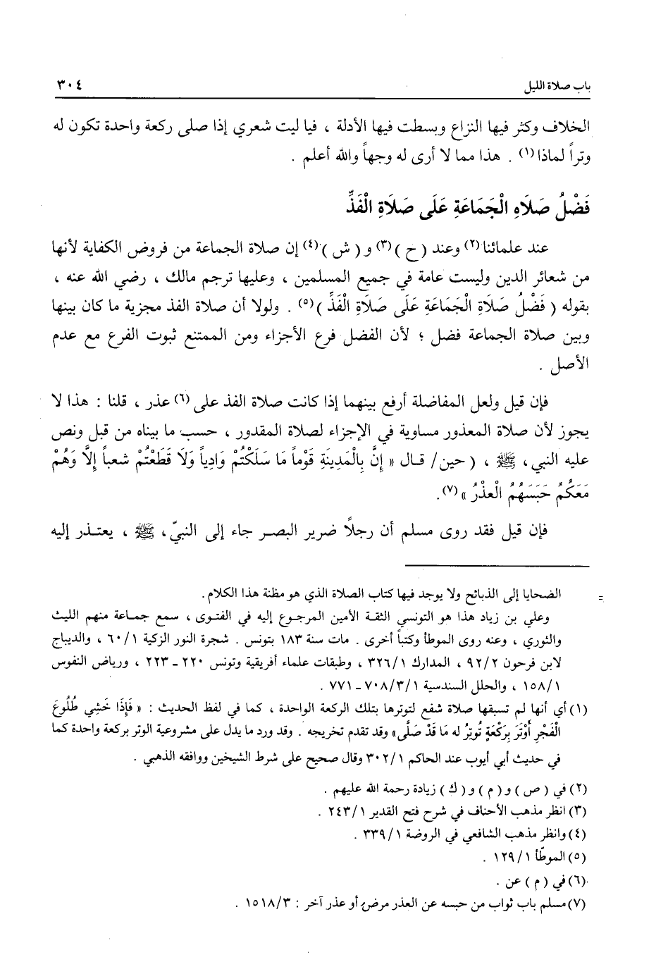 = الضحايا إلى الذبائح ولا يوجد فيها كتاب الصلاة الذي هو مظنة هذا الكلام. وعلي بن زياد هذا هو التونسي الثقة الأمين المرجوع إليه في الفتوى، سمع جماعة منهم الليث والثوري، وعنه روى الموطأ وكتبًا أخرى. مات سة 183 بتونس. شجرة النور الزكية 1/ 60، والديباج لابن فرحون 2/ 92، المدارك 1/ 326، وطبقات علماء أفريقية وتونس 220 - 223، ورياض النفوس 1/ 158، والحلل السندسية 1/ 3/ 708 - 771.