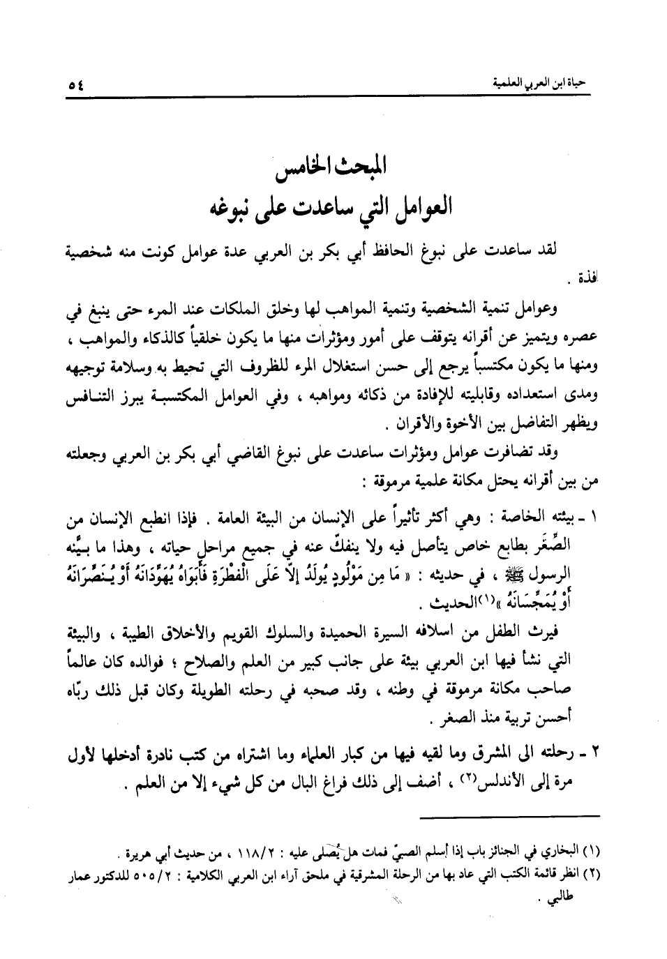 (¬2) انظر قائمة الكتب التي عاد بها من الرحلة المشرقية في ملحق آراء ابن العربي الكلامية: 2/ 505 للدكتور عمار طالبي.