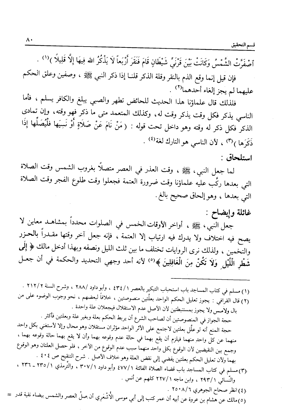 لما جعل النبي، - صلى الله عليه وسلم -، وقت العذر في العصر متصلاً بغروب الشمس وقت الصلاة التي بعدها ركَّب عليه علماؤنا وقت ضرورة العتمة فجعلوا وقت طلوع الفجر وقت الصلاة التي بعدها، وهو إلحاق صحيح بالغ.