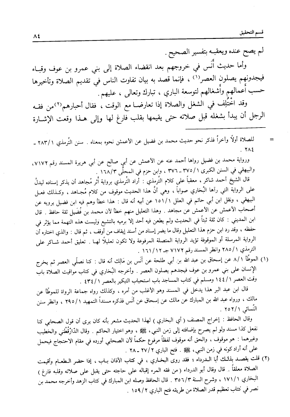 وأما حديث أنَس في خروجهم بعد انقضاء الصلاة إلى بني عمرو بن عوف وقباء فيجدونهم يصلون العصر (¬1)، فإنما قصد به بيان تفاوت الناس في تقديم الصلاة وتأخيرها حسب أَعمالهم وأَشغالهم لتوسعة الباري، تبارك وتعالى، عليهم.