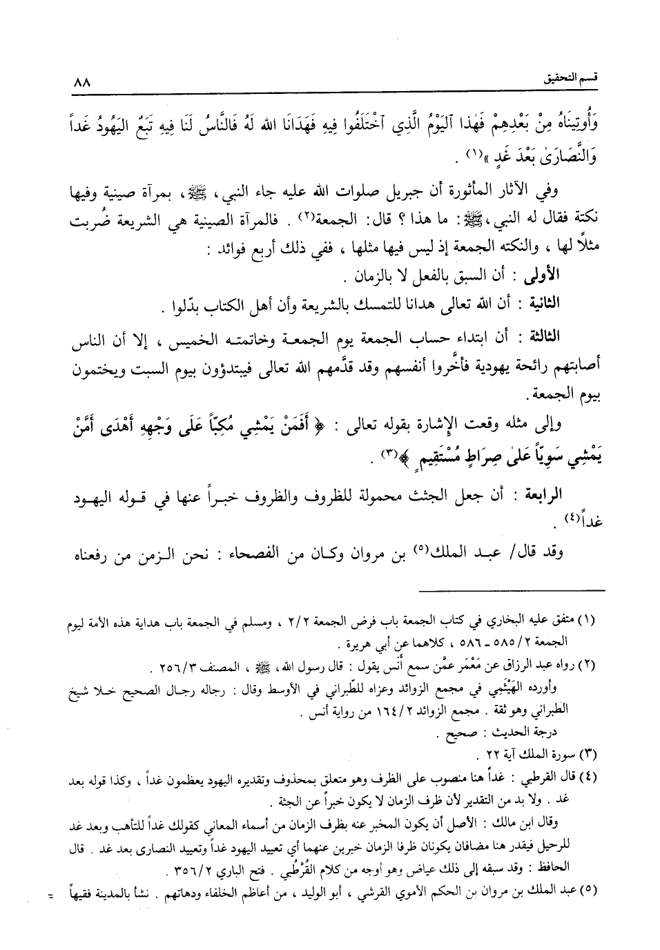 وَأُوتينَاهُ مِنْ بَعْدِهِمْ فَهذا اليَوْمُ الَّذِي اخْتَلَفُوا فِيهِ فَهَدَانَا الله لَهُ فَالنَّاسُ لَنَا فِيهِ تَبَعٌ اليَهُودُ غَداً وَالنَّصَارَي بَعْدَ غَدٍ" (¬1).